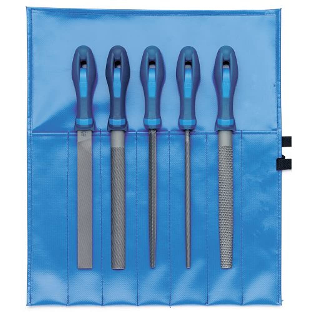 Высококачественные напильники 250 мм длиной для промышленного и ремесленного производства в защитном атмосферостойком гибком футляре из ПВХ для хранения в ящике или на верстаке. Каждый напильник имеет эргономичную рукоятку.